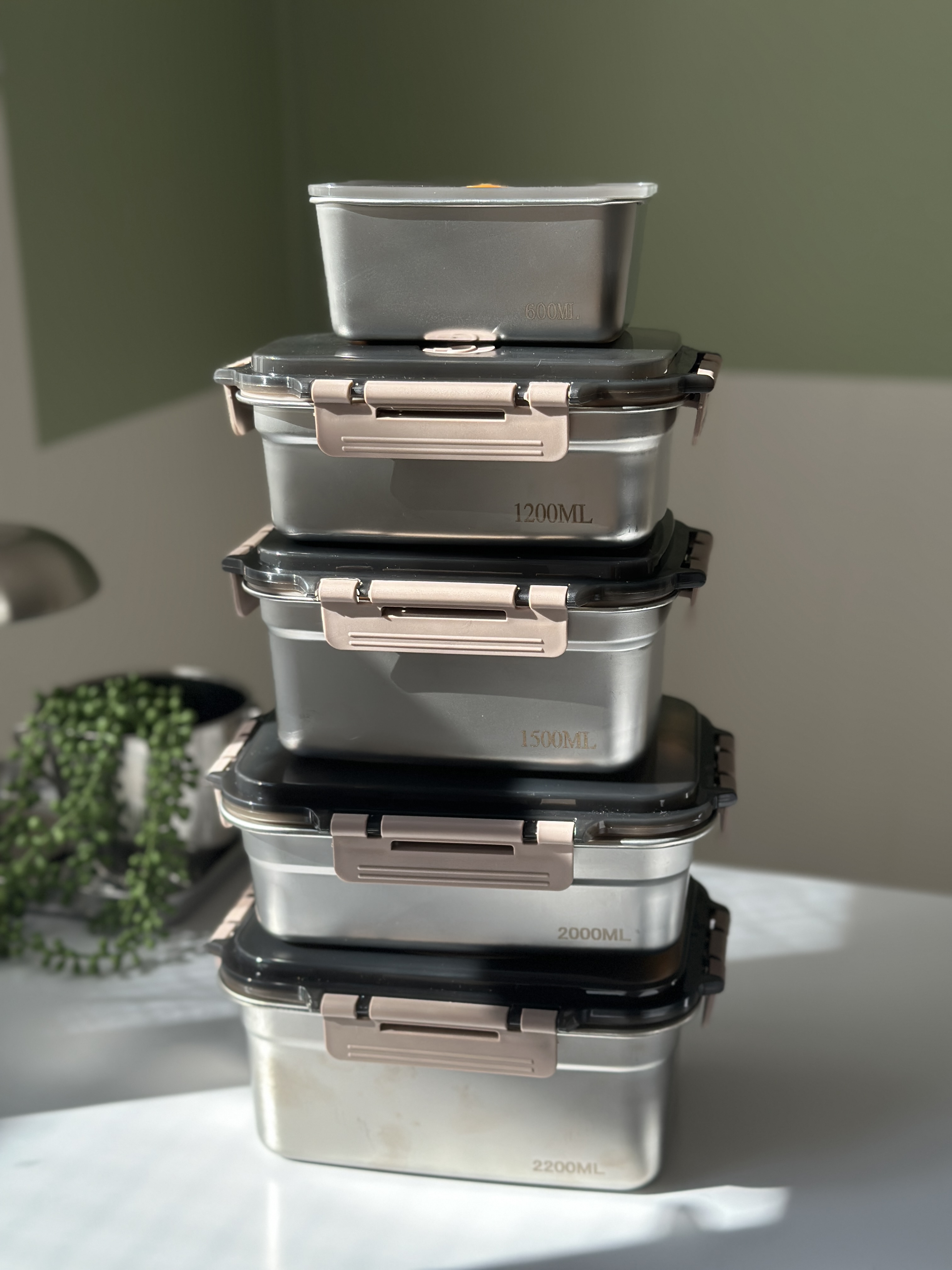 ظرف نگهدارنده ست استیل 5تیکه با درب وکیوم