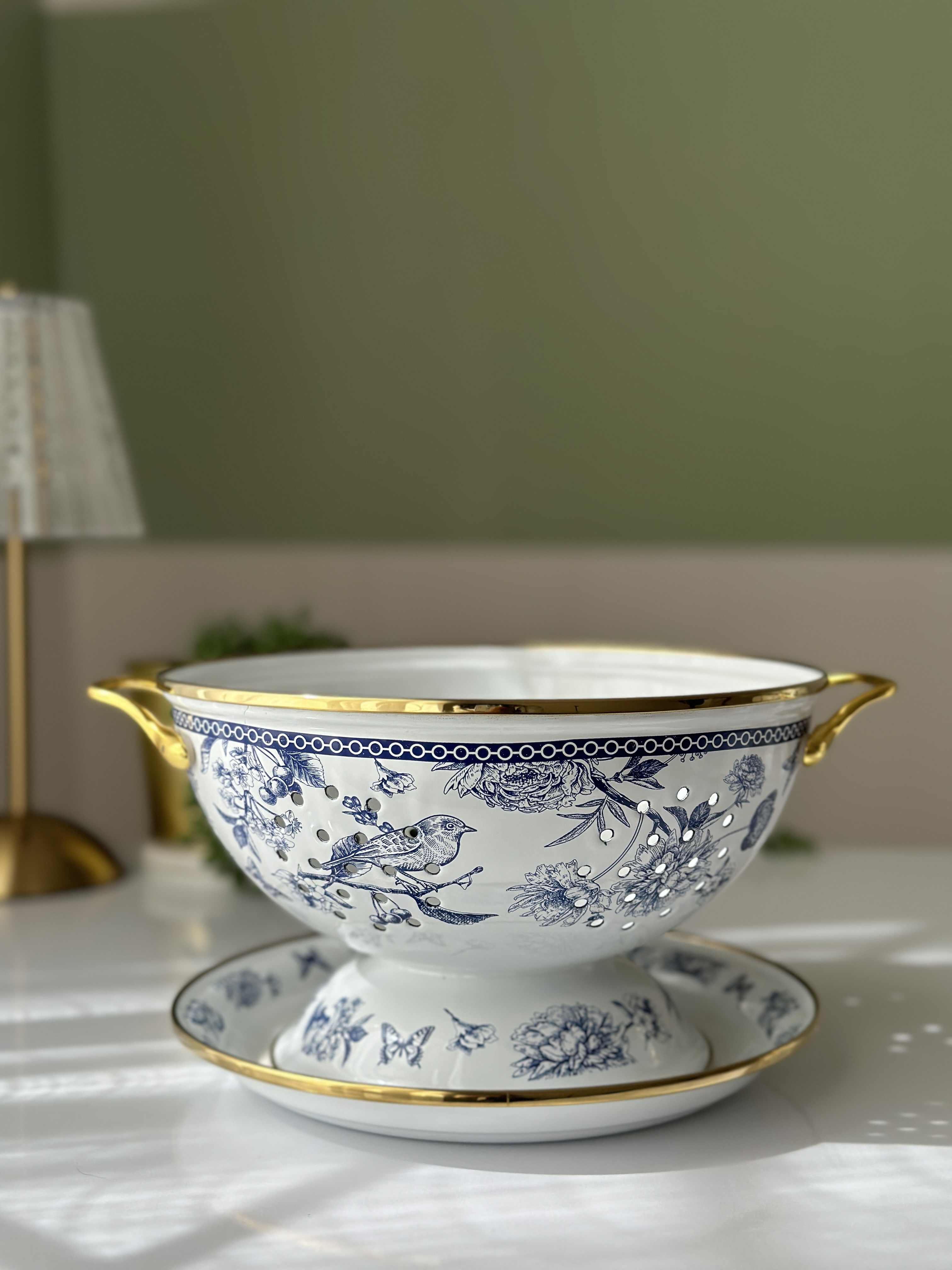 آبکش لعابی طرح دار با قطر 23سانت