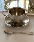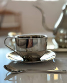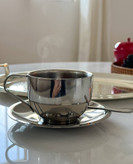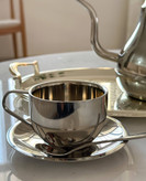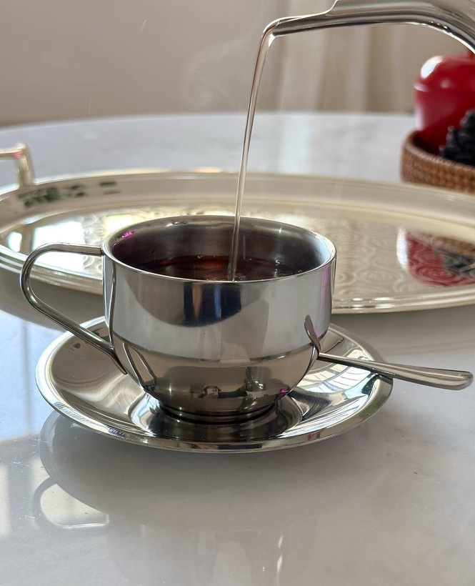 فنجون دوجداره استیل حجم ١٨٠میل به همراه نعلبکی و قاشق استیل 304
