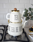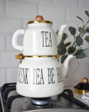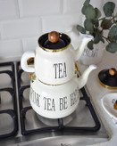 ست کتری و قوری لعابی تکست دار با حجم کتری 2/4و قوری 1لیتر